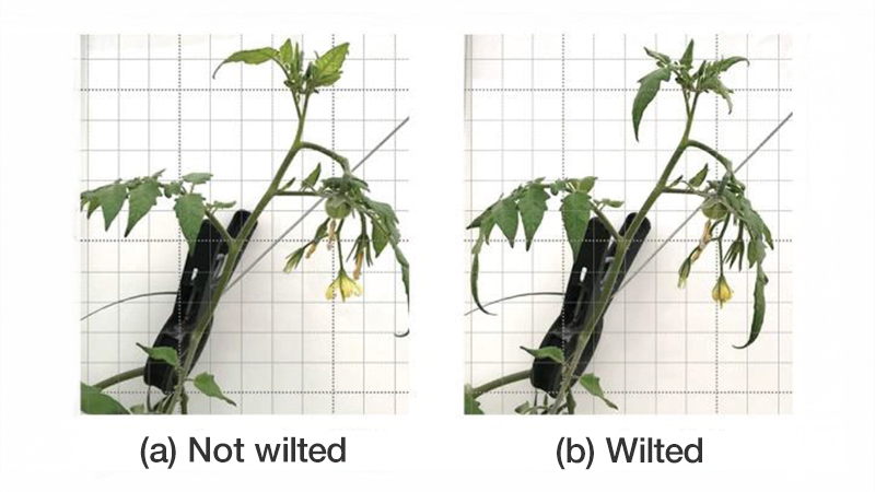 How can the expert intuition and experience used to judge leaf wilting based on color, shape, and softness and determine the optimum watering be quantified? Kubota installed a fixed-point camera to monitor tomato colonies. Realizing that healthy foliage visible in the images decreases when plants wilt, it quantified the coverage rate of plants in the image and used this to calculate the wilt rate. It then considered a mechanism that would automatically water plants when this wilt rate falls below a certain value.