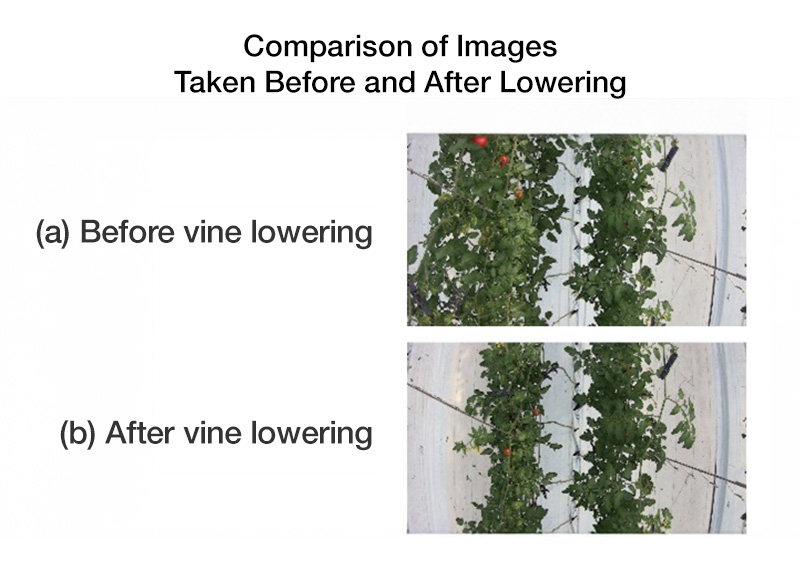 A ten-month test cultivation was carried out with and without the automatic watering control system. It used cultivation under identical conditions, up to the day-to-day watering and caretaking. The results confirmed that implementing the system achieved 46% reduction in time spent managing watering and an 8% increase in yield. And as for sugar content, it showed that a high content of 8 degrees Brix could be maintained.
