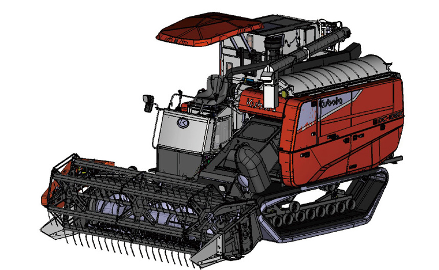 Kubota has acquired the top share in the Thailand combine harvester market in terms of sales volume. However, the market share remains relatively low in the harvesting area in the main north-eastern region. This is due to the strong popularity of machines manufactured by other companies in Thailand, which have high work efficiency in spite of the adverse conditions of the long-culm lodging rice and deep wet fields that are prevalent in the north-eastern region. Therefore, we developed a new model to improve “longculm lodging performance” and “wet field performance” with a 2-pump 2-motor transmission, aiming to improve work efficiency under adverse conditions.