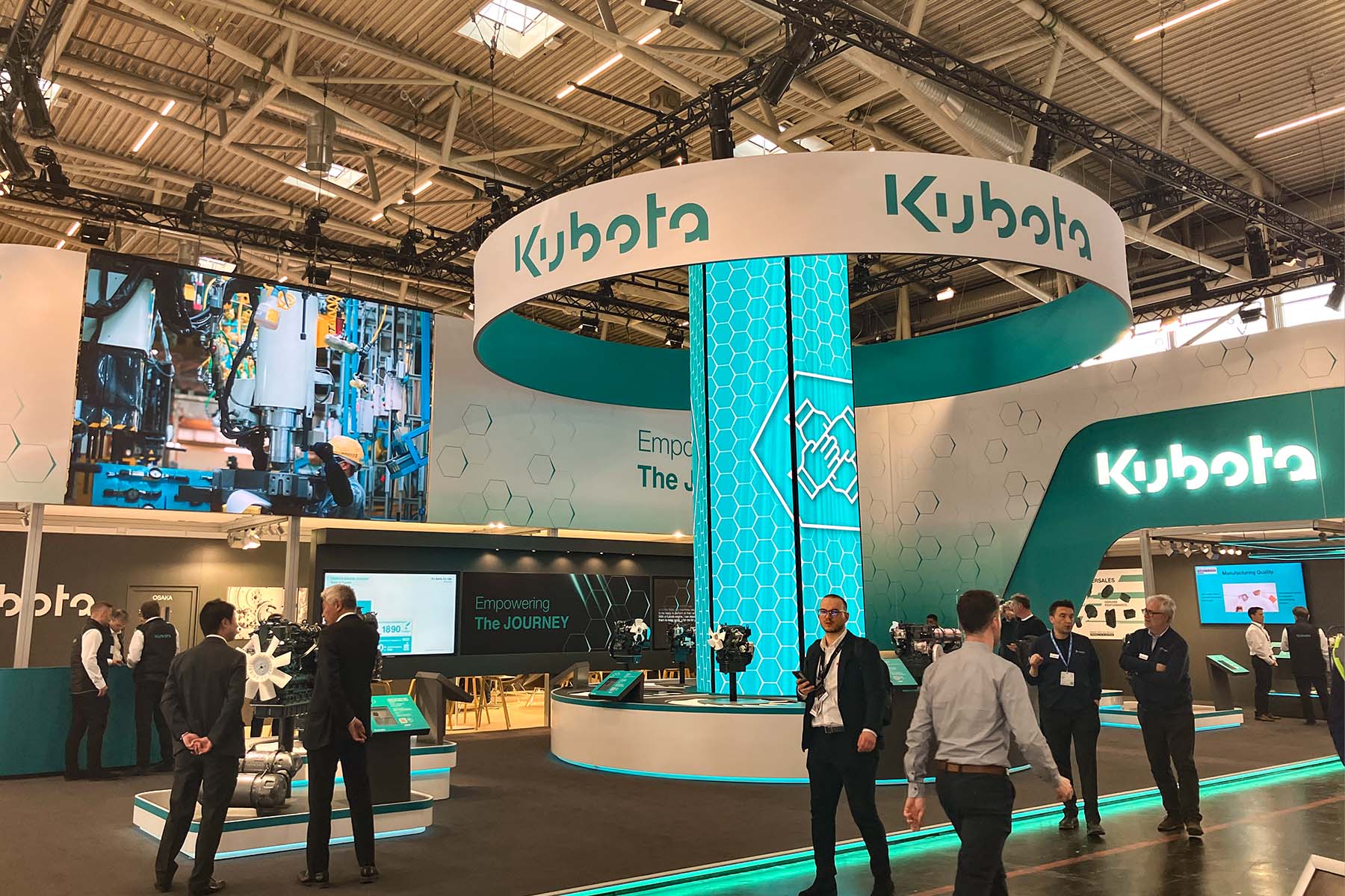 Along with these solutions, we exhibited the Z482-K, a highly versatile new two-cylinder engine developed in partnership with Aixam Mega (France), and provided live demonstrations for engines including the V5009, Kubota’s first diesel engine to exceed 200 horsepower, so that visitors could see them in action.