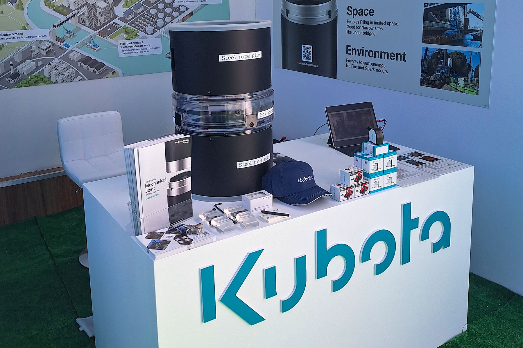 “I felt that it went beyond the scope of an exhibition,” recalls Takuto Yamashita from Kubota’s Steel Pipe Sales Division about Kubota’s booth at bauma. “Along with the business aspects, we could enjoy food together, and on weekends many families visited the venue, making it feel more like a festival. I think it also fulfills a role as a place for learning for the children who will be businesspeople of the future.”