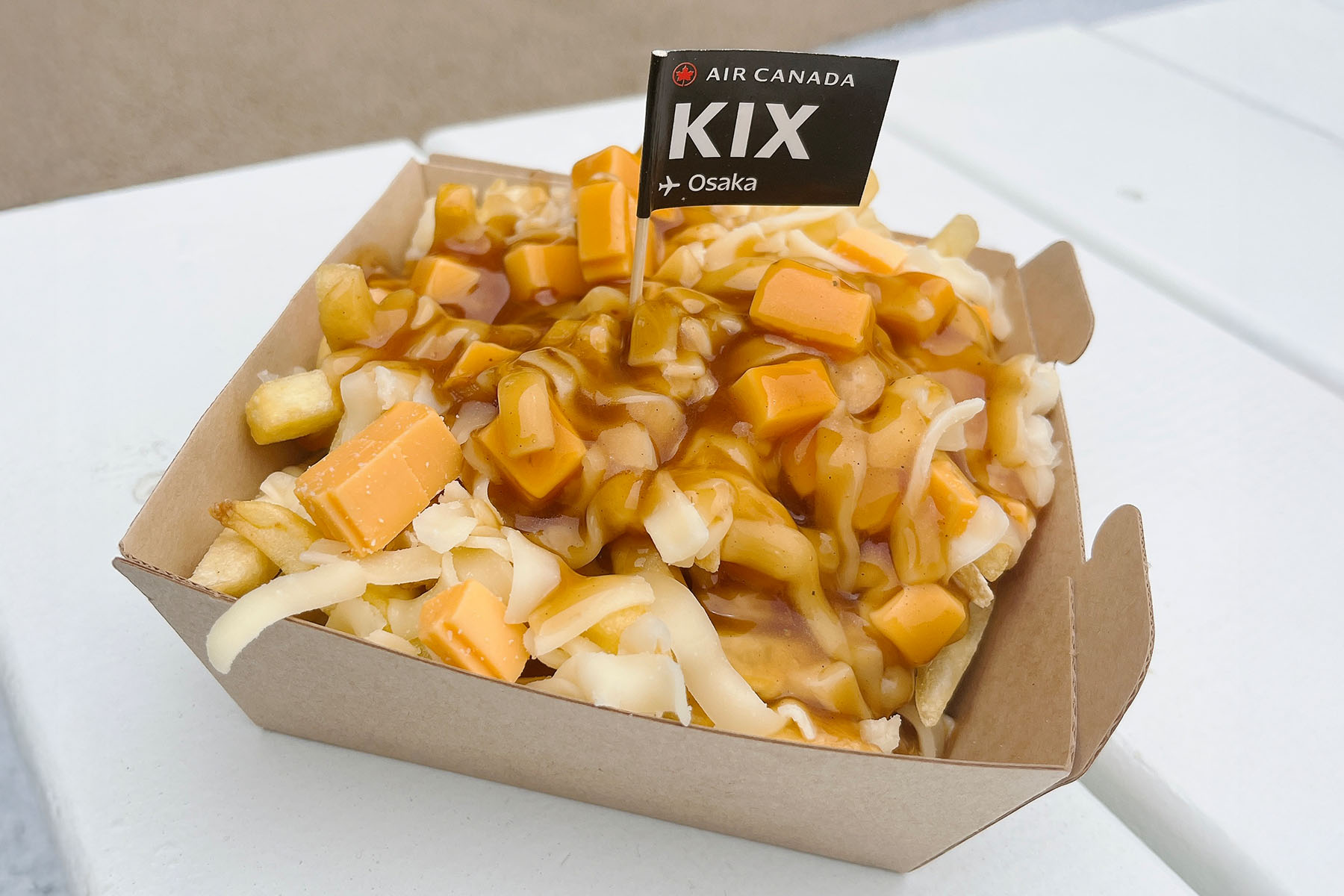 Poutine, a dish originating in Quebec, Canada, that combines French fries, cheese, and gravy, is available at the cafeteria located in the Canada pavilion.